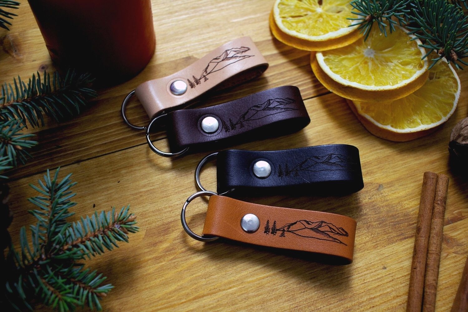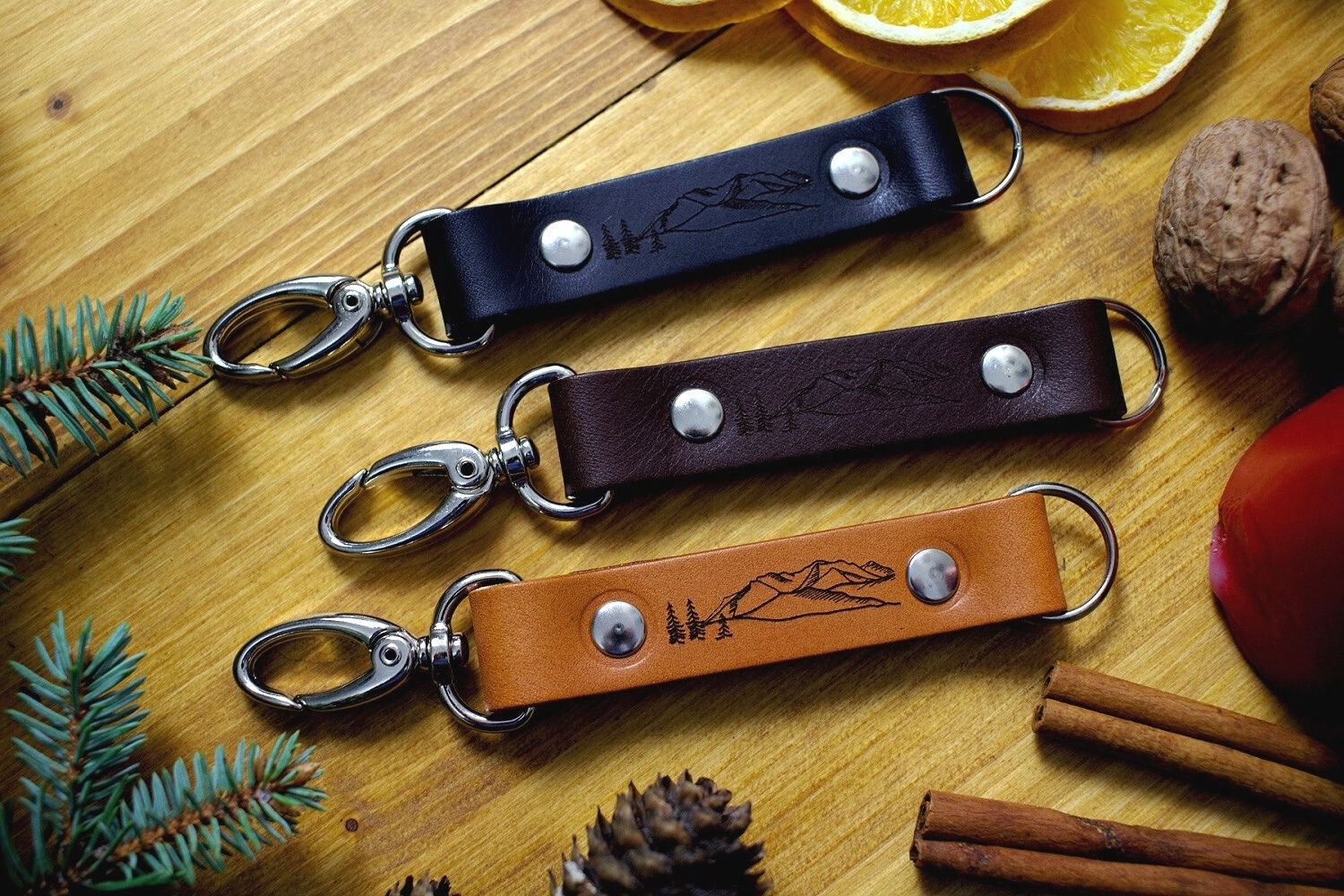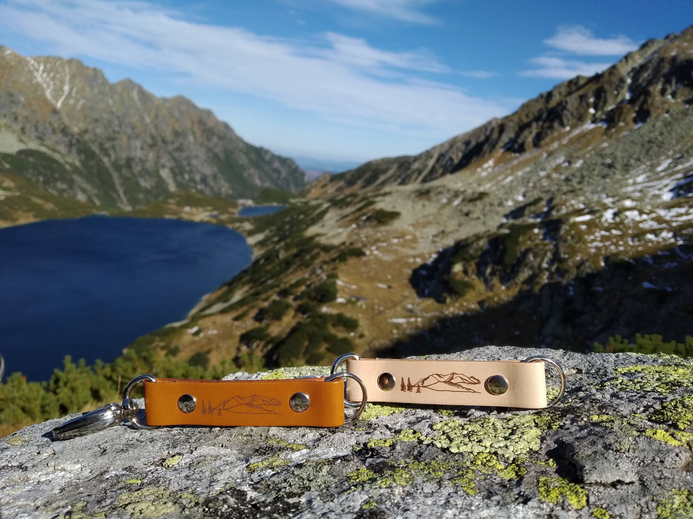 Skórzany brelok do kluczy z karabinkiem – Góry